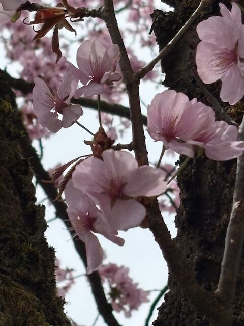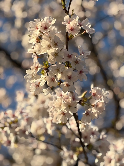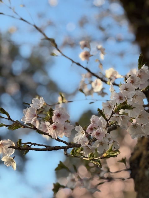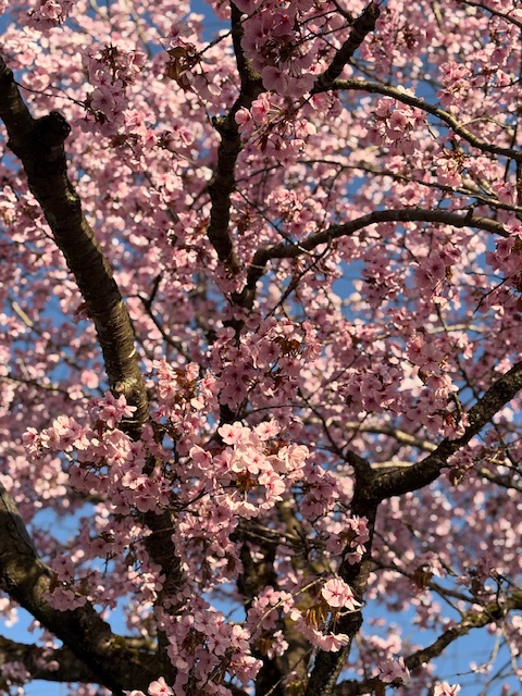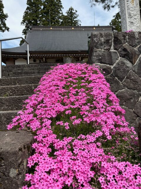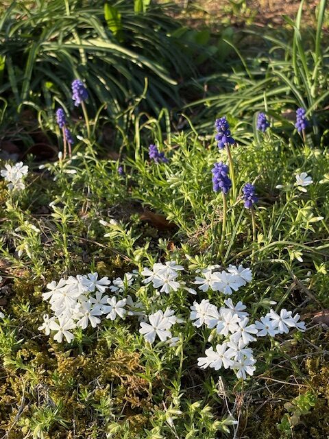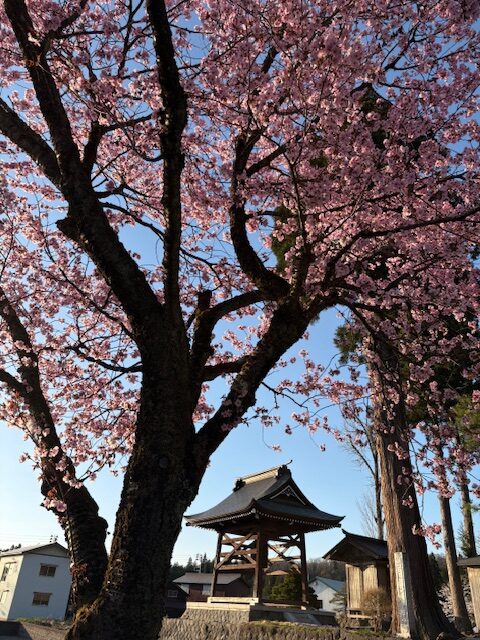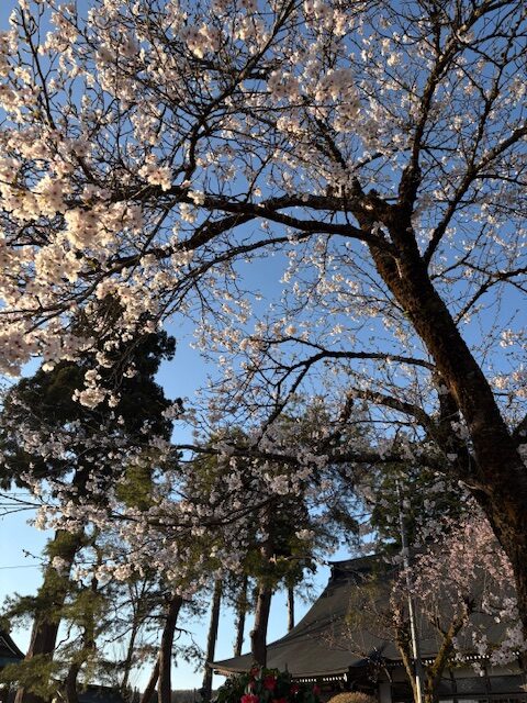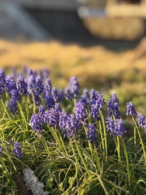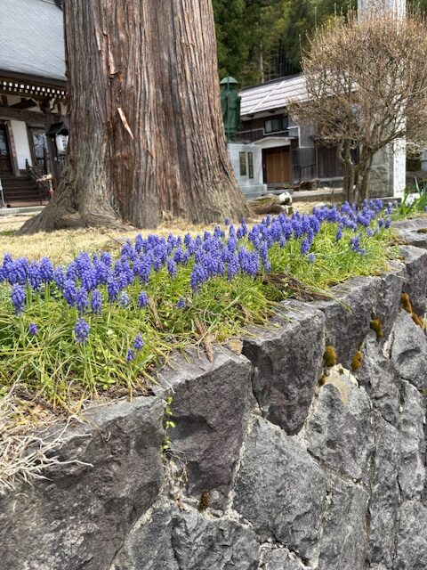 今日は春らしい良い天気になりました。境内の桜や芝桜、ムスカリの花が満開です。